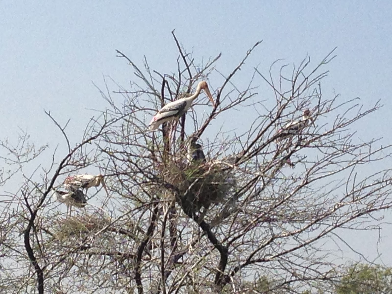 branches of babool trees. Another species of stork, generally seen here